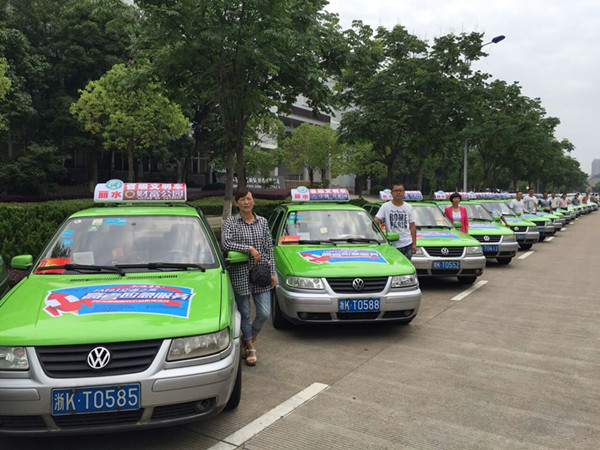 一年一度的高考,牽動(dòng)著人們的心。為了能使今年的“高考應(yīng)急服務(wù)”活動(dòng)圓滿(mǎn)完成,6月6日,所有參加活動(dòng)的52輛出租車(chē),在天寧工業(yè)區(qū)排成長(zhǎng)龍,師傅們?yōu)樽约旱能?chē)貼上統(tǒng)一的服務(wù)標(biāo)志。麗汽集團(tuán)客長(zhǎng)運(yùn)出租車(chē)分公司經(jīng)理梁巍代表市區(qū)三家出租車(chē)公司發(fā)出“愛(ài)心送考”倡議。麗汽集團(tuán)客長(zhǎng)運(yùn)出租車(chē)分公司共有22出租車(chē)參與“高考應(yīng)急服務(wù)”。